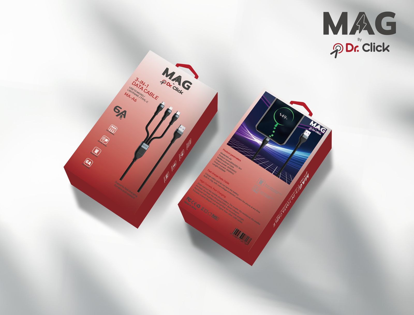 Simplify your charging experience with the MAG MA-A6 3-in-1 Data Cable by Dr. Click. Designed for modern users who own multiple devices, this cable combines USB-C, Lightning, and Micro-USB connectors into a single compact solution.
