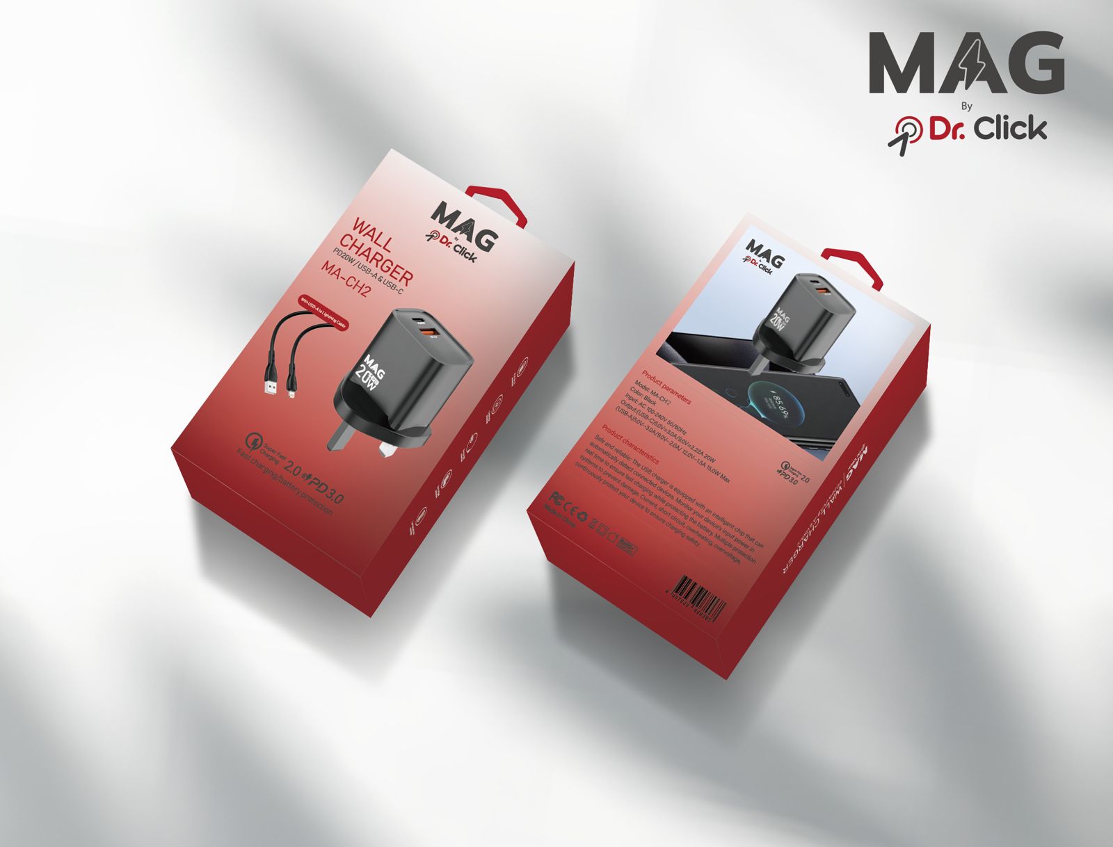 The MAG MA-CH2 20W Wall Charger by Dr. Click combines dual-port convenience with cutting-edge fast charging technology — all in a sleek, compact form factor that fits in your pocket and powers your life.