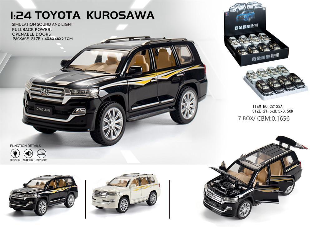 Bring home a realistic miniature of the legendary Toyota Land Cruiser with this 1:24 scale die-cast model car. Crafted with high-quality metal and detailed finishing, this model replicates the powerful SUV design with impressive accuracy.